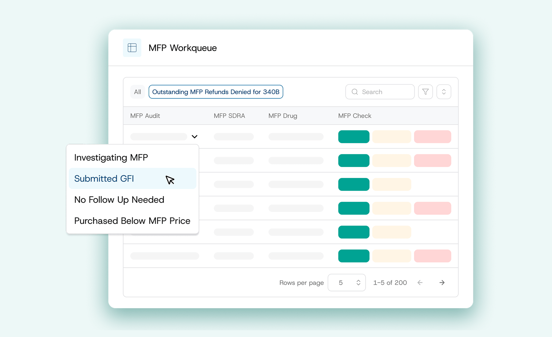 Plenful organizes claim-level tasks into a streamlined workqueue. Easily filter claims to analyze outstanding MFP refunds denied for 340B, duplicate discounts, MFP refunds not equal to SDRA, pending 835s, and more. Empower your team to maximize their time and impact.