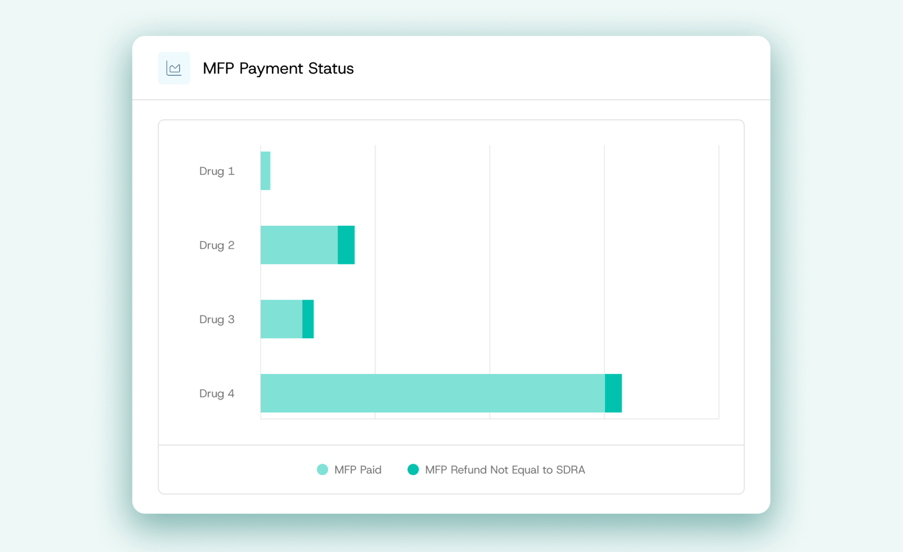Closely examine MFP reconciliation data by drug. Follow the complete path by tracking MFP refunds paid by drug, outstanding refunds, and MFP refunds not equal to SDRA.